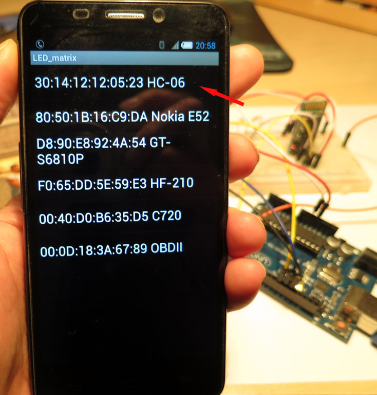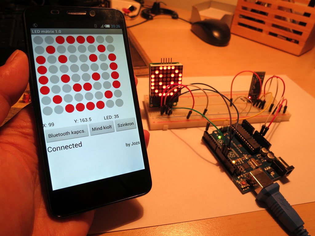 Arduino LED Matrix controlled over Bluetooth by Android Telephone