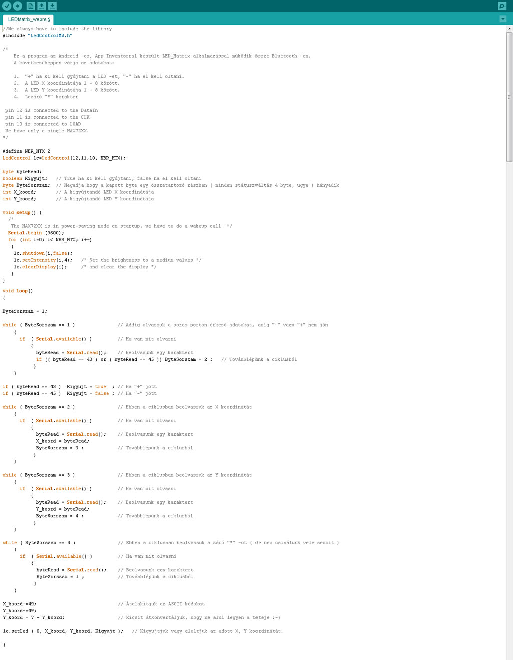 Természetesen az Arduiono ezt is várja. Ezzel elérkeztem az Arduino oldali programhoz, ami így néz ki: